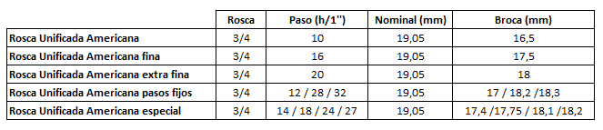 Me queda otra duda, y es saber cómo es el tipo de medida de la rosca de mi grifo, porque resulta que no aparece por ningún sitio un identificador, y he visto que hay estándar para nombrar a los componentes. Tengo dudas, porque tampoco tengo aparatos de precisión para poder medir todo lo que los fabricantes especifican. Estas son las posibilidades a las que he llegado, después de revisar la tabla de roscas normalizadas de Tornillera Aragonesa, que creo que pueden ser la mía: